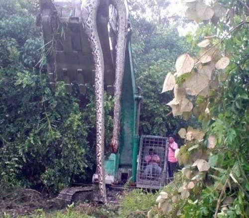 O fotográfo alegou que a cobra era uma das duas jibóias enormes encontrado por trabalhadores, que estavam desmatando a floresta para criação de uma nova estrada.